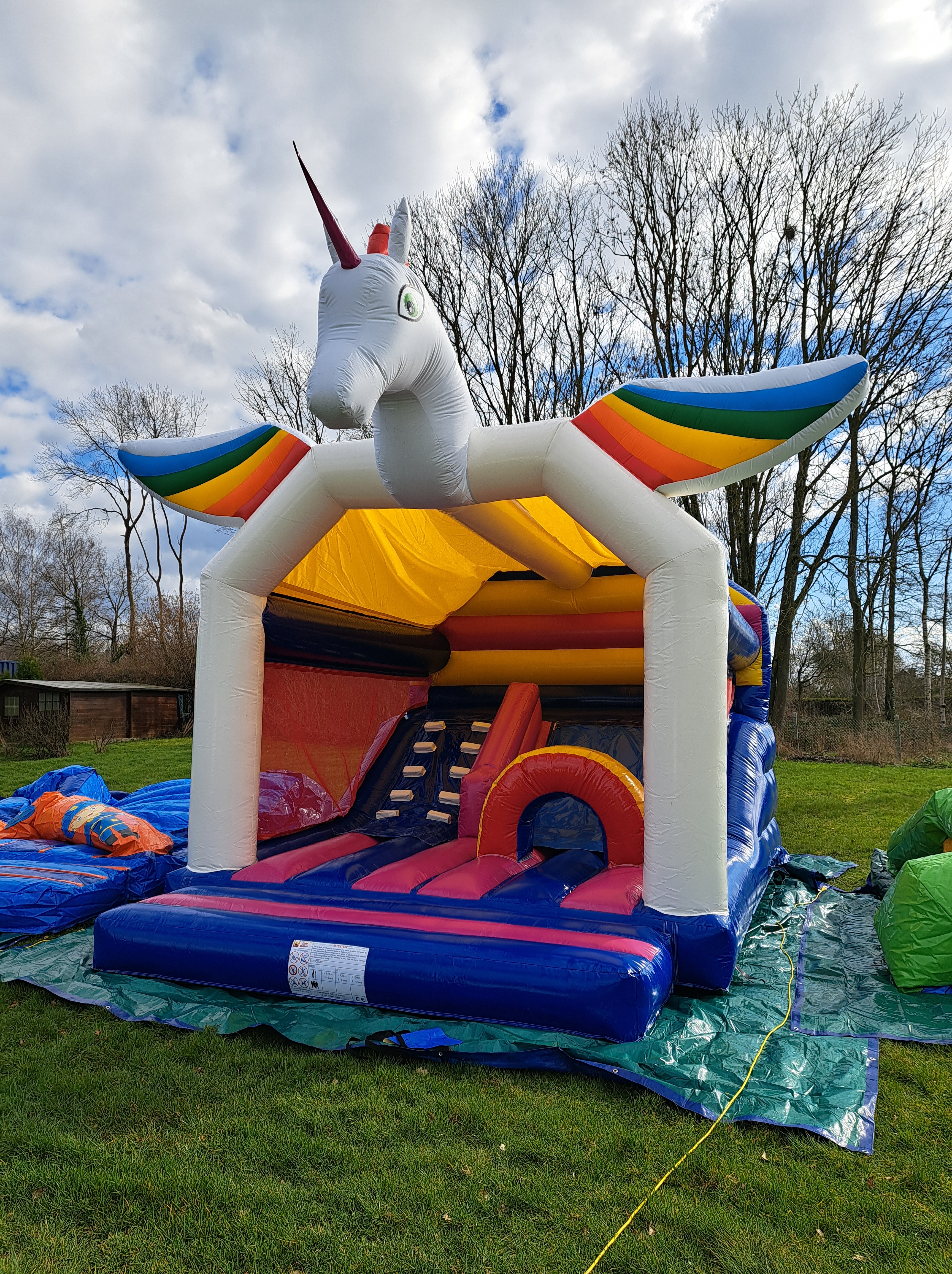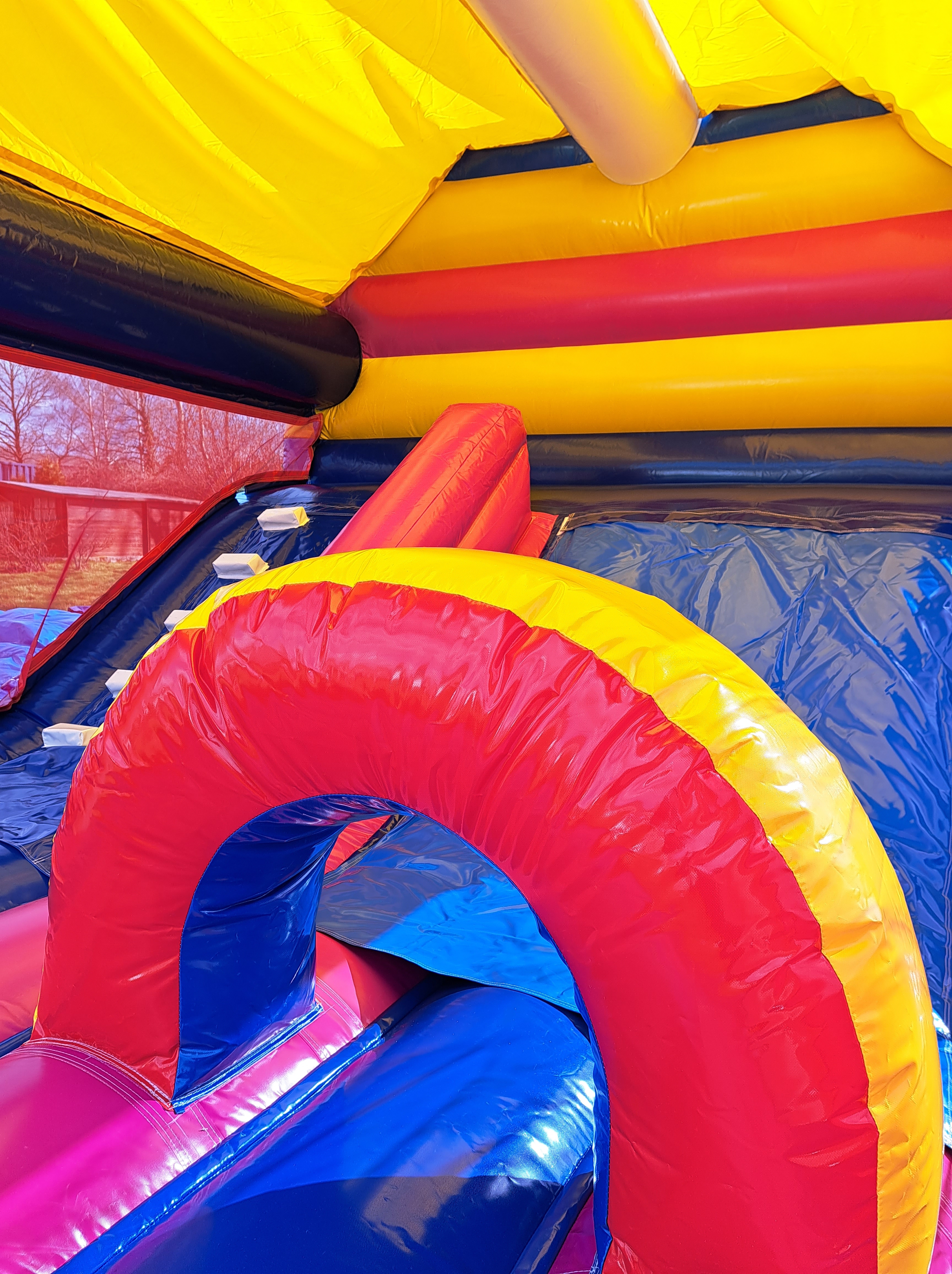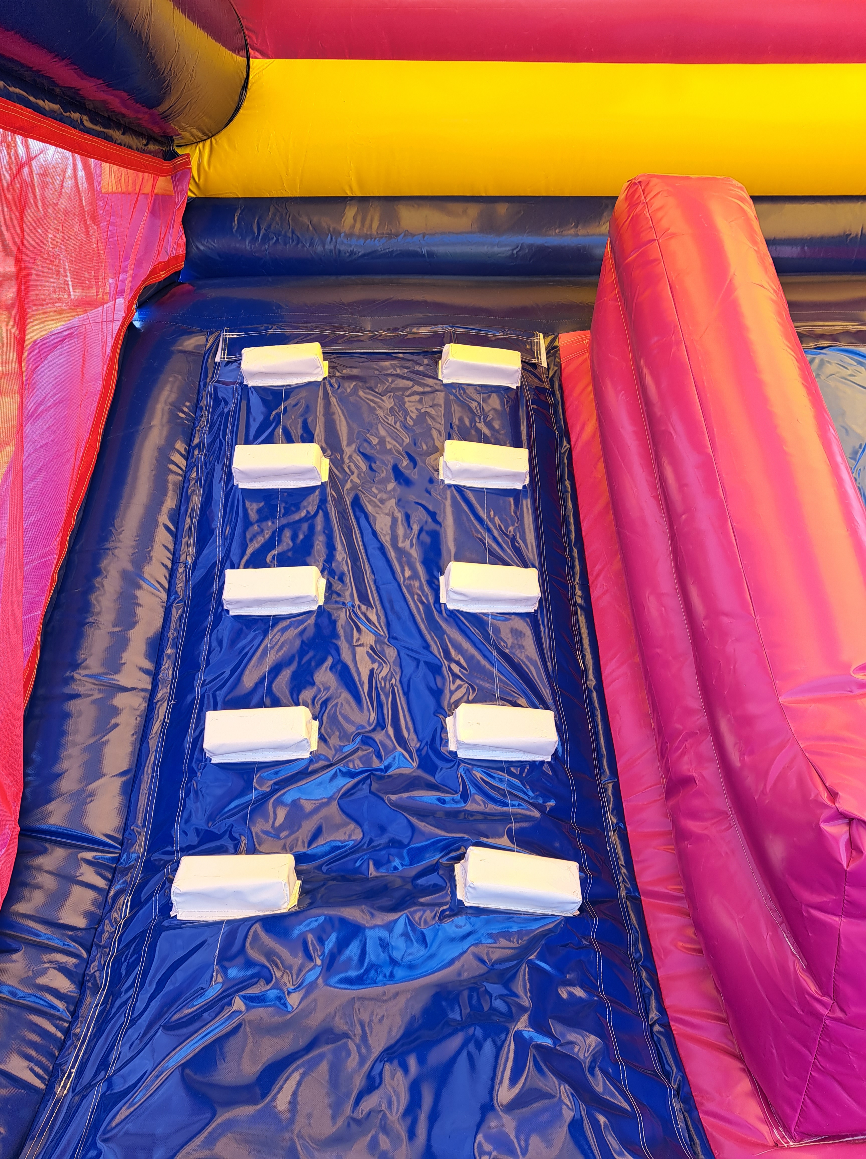 Ce grand château, qu’on ne peut pas raté, ravira vos enfants par son toboggan intérieur qui leur évite de sortir de la structure, le fait de pouvoir passer sous l’obstacle, ou au dessus, promet de bonnes rigolades. Il peut accueillir 10-12 enfants et est couvert pour protéger vos enfants des rayons du soleil.