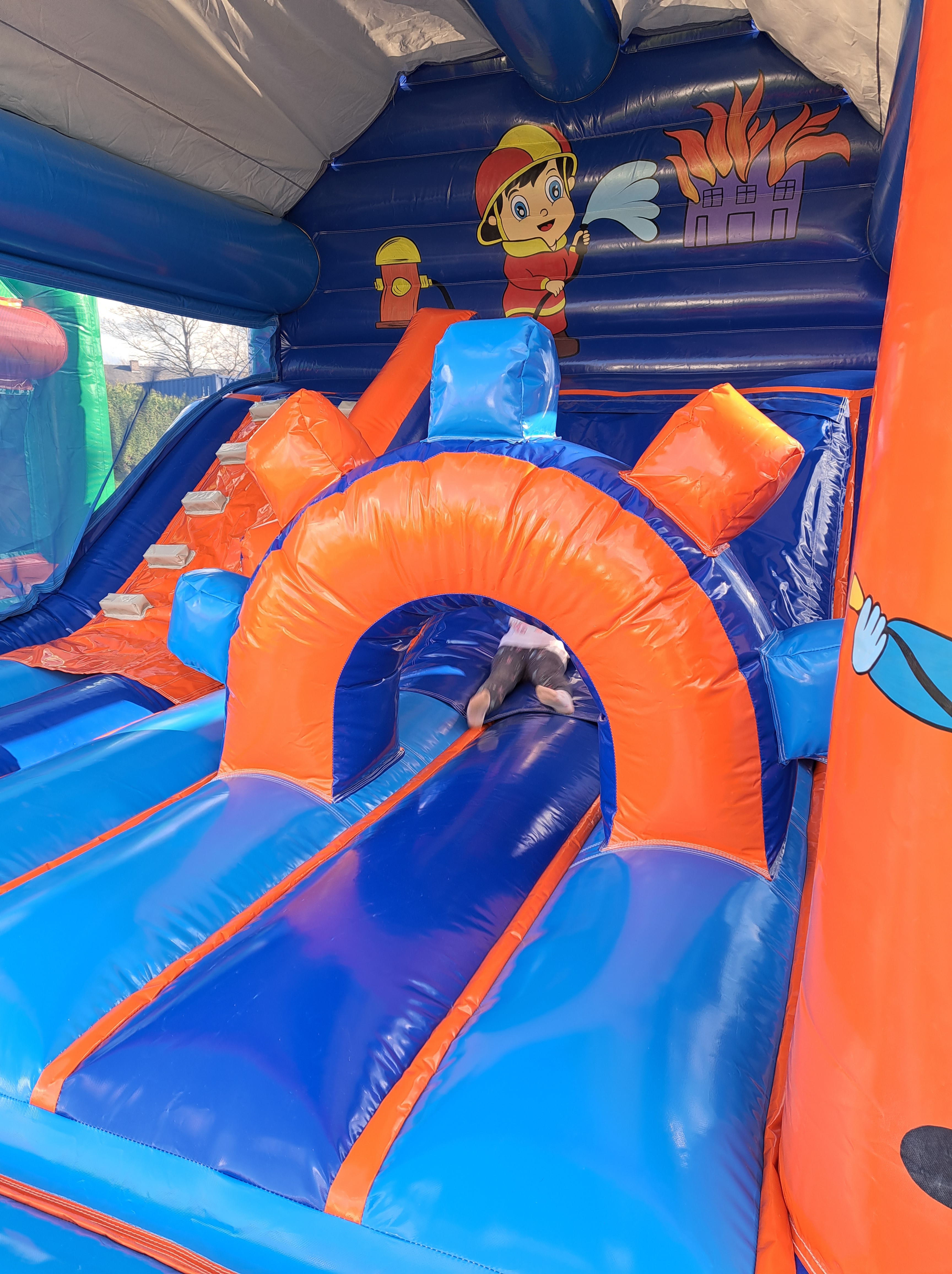 Ce grand château ravira vos enfants par son toboggan intérieur qui leur évite de sortir de la structure, le fait de pouvoir passer sous l’obstacle, ou au dessus, promet de bonnes rigolades. Il peut accueillir 10-12 enfants et est couvert pour protéger vos enfants des rayons du soleil.